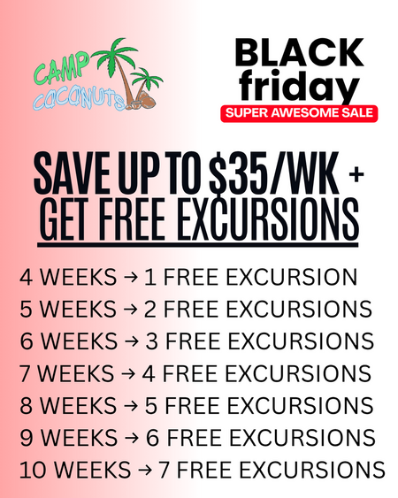 Black Friday is HERE—Lock in SUPER AWESOME SAVINGS Lil' Coconuts, Teen Travel, and Camp Coconuts for Summer 2026!