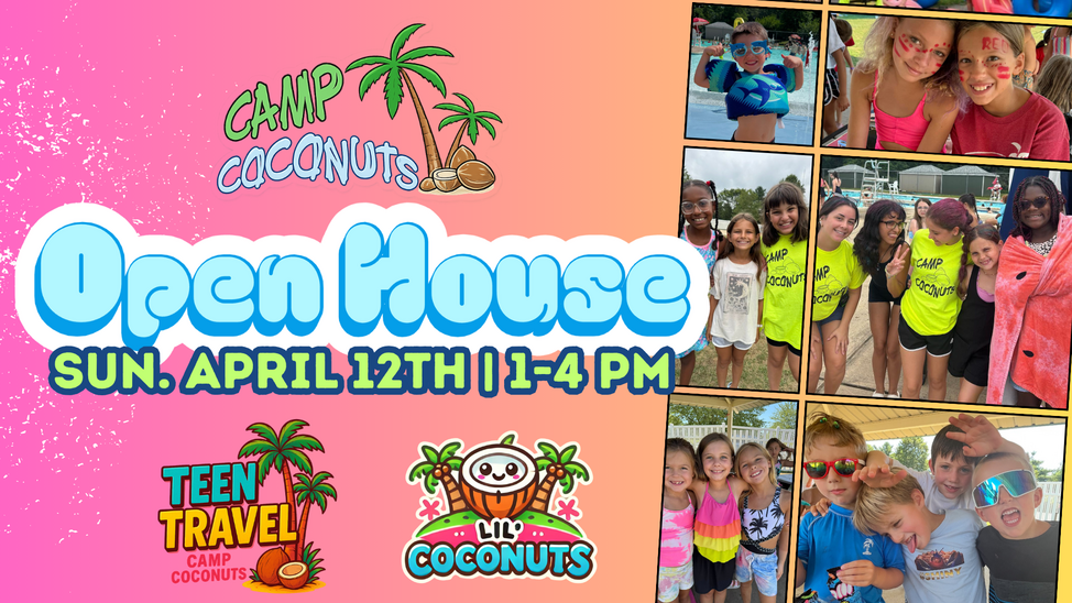 Join us for next open house to learn about all our summer prgrams: Lil' Coconuts (NOW ages 3-6), Camp Coconuts (ages. 4-14), & Teen Travel (grades 7-12th)!